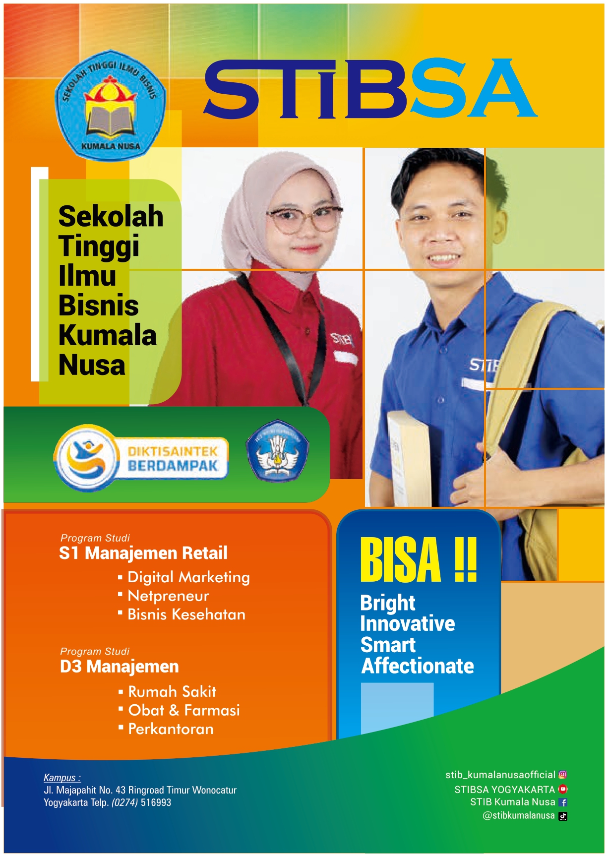 Langsung datang ke kampus STIBSA Yogyakarta, Jl. Ringroad Timur No 43 Wonocatur.Telp. (0274) 516993, Fax. (0274) 516993 Yogyakarta atau